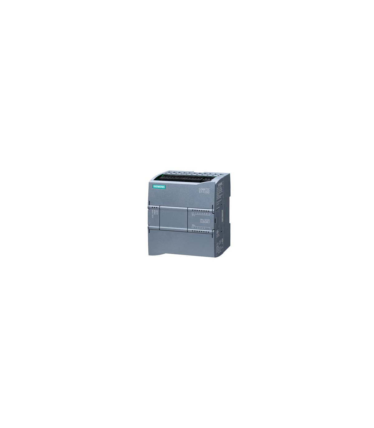 SIMATIC S7-1200, CPU 1212C, compact CPU, AC/DC/relay, onboard I/O: 8 DI 24 V DC; 6 DO relay 2 A; 2 AI 0-10 V DC, power supply: AC 85-264 V AC at 47-63 Hz, program/data memory 100 KB